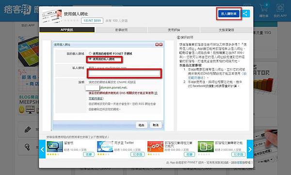 3. 點選您要購買的 APP,按右上方的「放入購物車」。(以「使用個人網址」APP 為例)