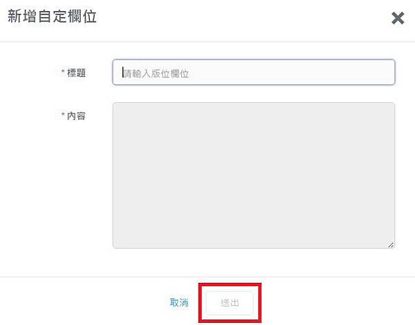 2. 請依您的需求輸入欄位標題,並將您取得的語法貼在「內容」欄位中,按下「送出」。