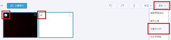 2. 請您進入要加蓋浮水印的相簿,接著勾選您想要加蓋文字浮水印的相片,按下「更多」並下拉選擇「加蓋浮水印」,即可替您方才勾選的相片全部加上相簿網址作為浮水印。